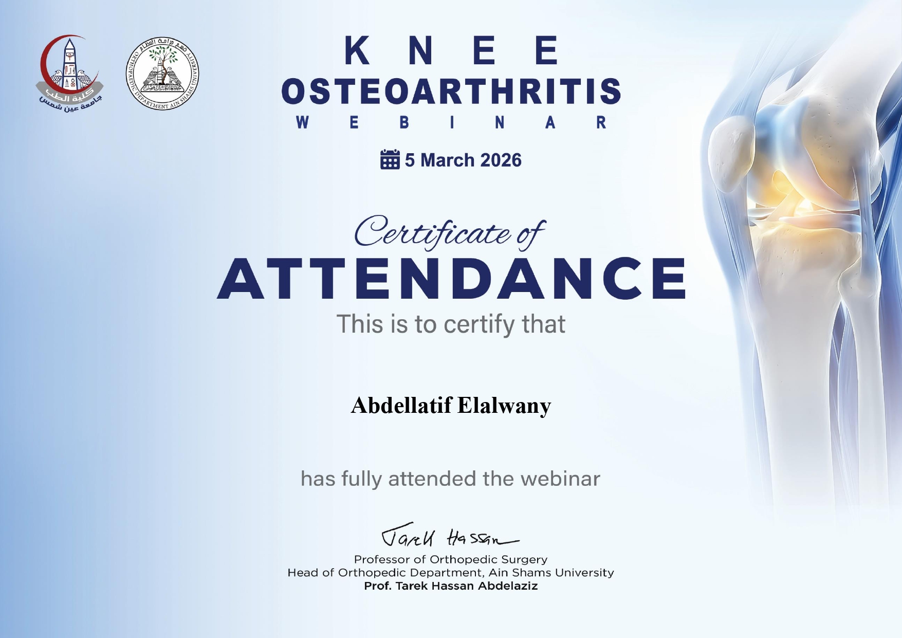 خشونة الركبتين و علاجها مع جلسة مناقشة للخبراء فى جؤاحة العظام فى مارس 2026
